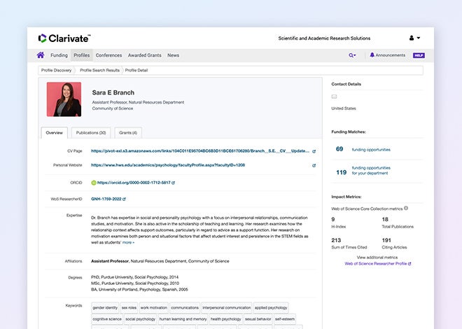Discover potential collaborators among millions of scholarly profiles that include publication data from the Web of Science Core Collection™.